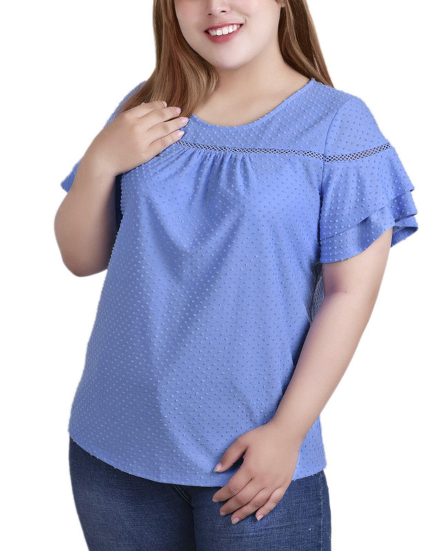 NY Collection Plus Double Flutter Sleeve Swiss Dot Top