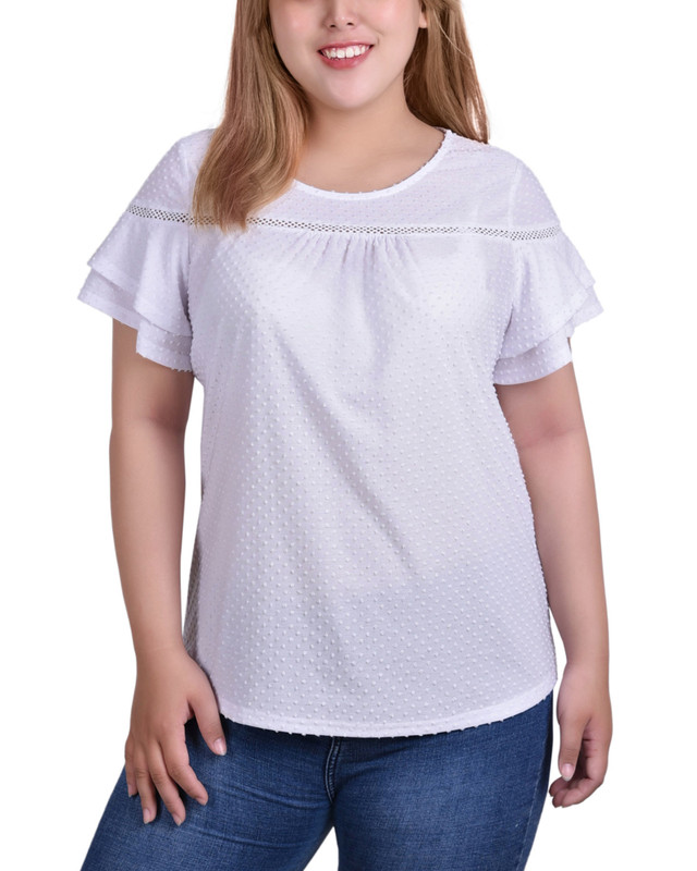 NY Collection Plus Double Flutter Sleeve Swiss Dot Top Bealls Florida