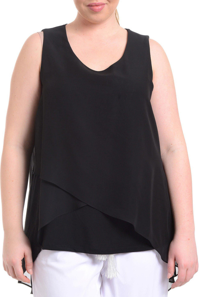 NY Collection brings a comfortable and stylish look to your wardrobe. This layered high-low top features a long split-back chiffon shirt tail, cross-over front and solid design. Back length of top layer is approximately 35 inches and length of under layer is 29 inches from size medium.