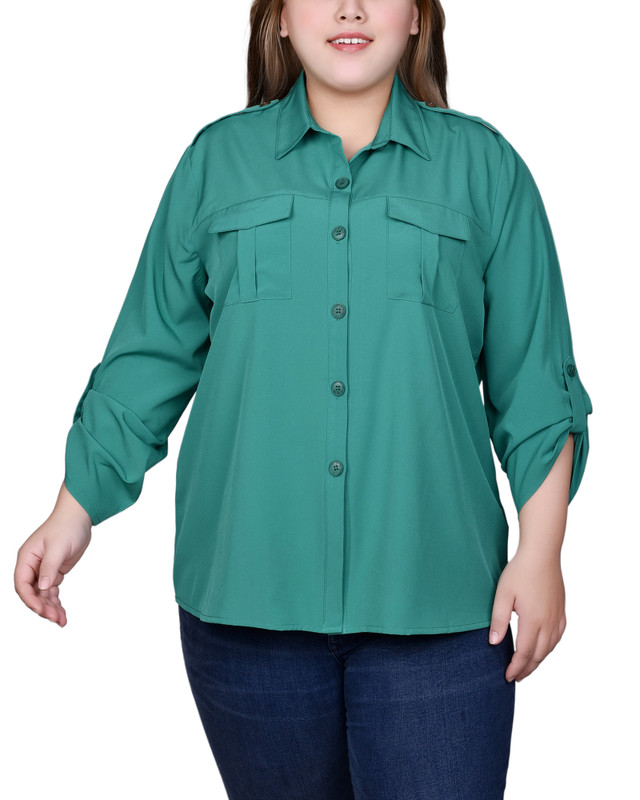NY Collection Plus 3/4 Roll Tab Blouse With Pockets