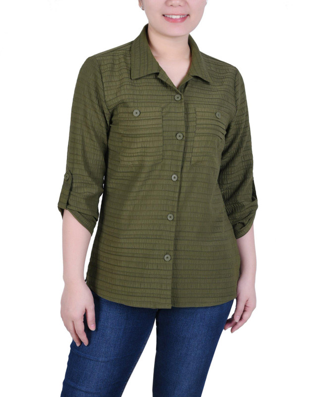 NY Collection Petite 3/4 Sleeve Woven Jacquard Blouse