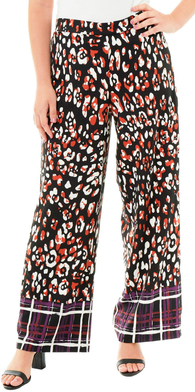 Express your fierce style with the bold, unforgettable design of this cheetah print pant with a contrasting plaid border from NY Collection. A wide leg silhouette and elastic back waist provide comfort and style for all-day wear.