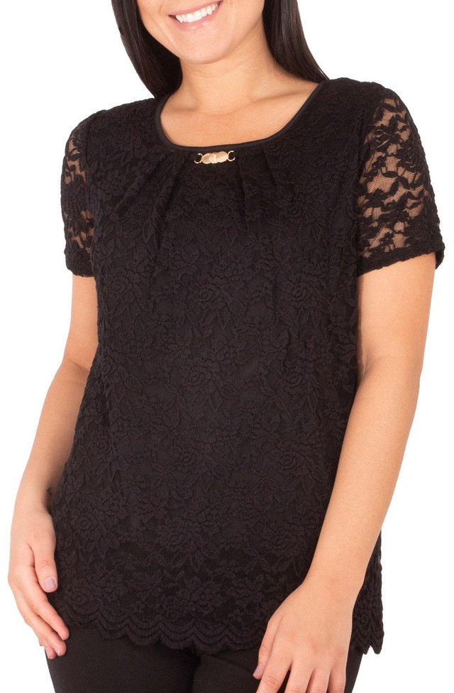 Lace is the new basic but theres nothing plain about this NY Collection knit lace top. Delicate fabric and neck hardware make this a perfect top for the office or an evening out.