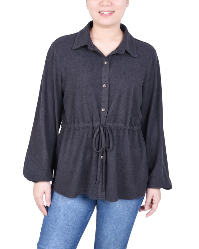 NY Collection Womens Long Dolman Sleeve Waist Tunic Top