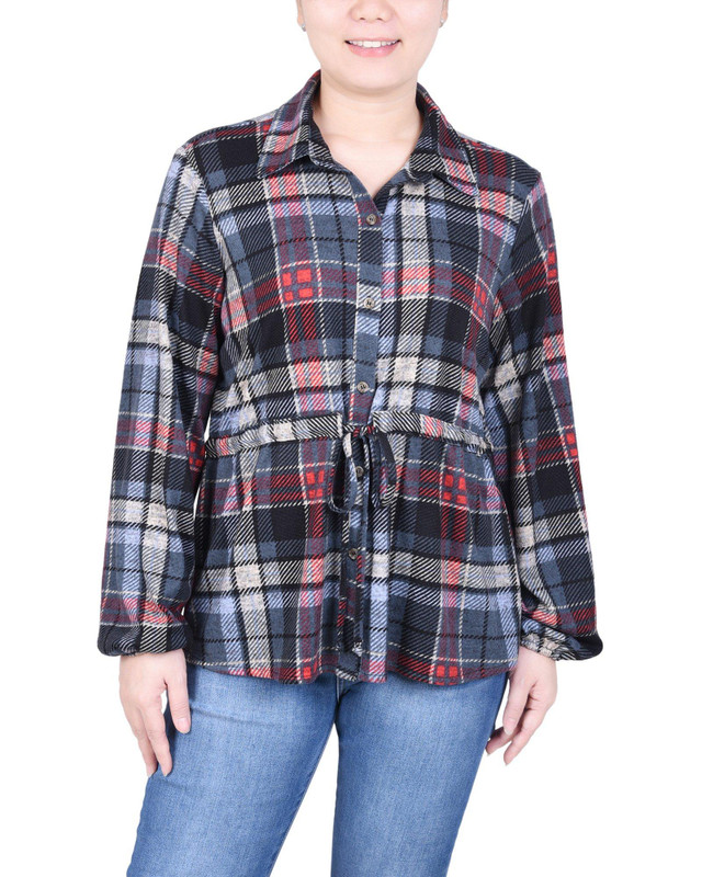 NY Collection Petite Long Dolman Sleeve Waist Tunic Top