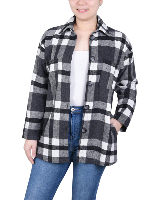 NY Collection Womens Long Sleeve Brushed Twill Shirtjacket