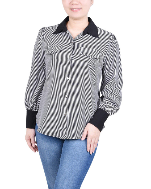 NY Collection Womens Long Sleeve Colorblocked Blouse