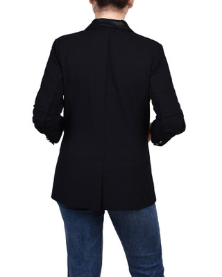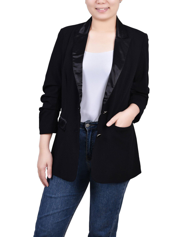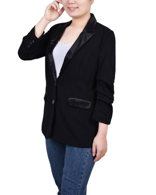 NY Collection Womens Long Sleeve Satin Lapel Blazer