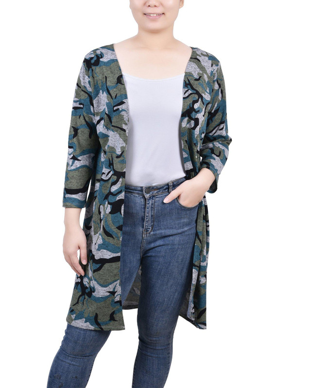 NY Collection Womens Missy 3/4 Sleeve Knit Cardigan