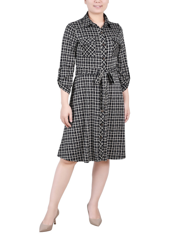 NY Collection Womens Missy 3/4 Sleeve Roll Tab Shirtdress