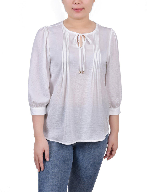NY Collection Womens Missy Elbow Sleeve Satin Blouse
