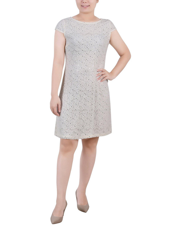 NY Collection Womens Missy Short Sleeve Lace Dress