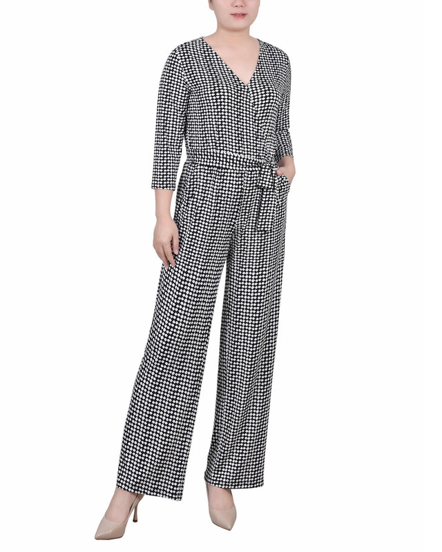 NY Collection Womens Petite 3/4 Sleeve Belted Jumpsuit