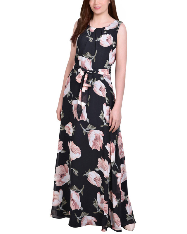 NY Collection Womens Sleeveless Chiffon Maxi Dress