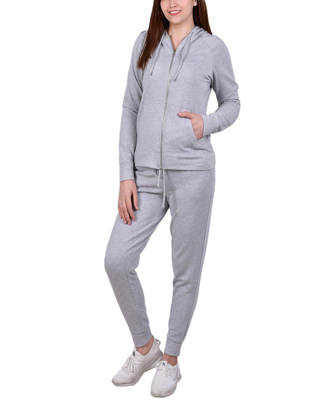 NY Collection Womens Zip Front Hoodie & Joggers Set