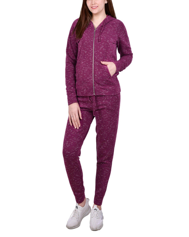 NY Collection Womens Zip Front Hoodie & Joggers Set