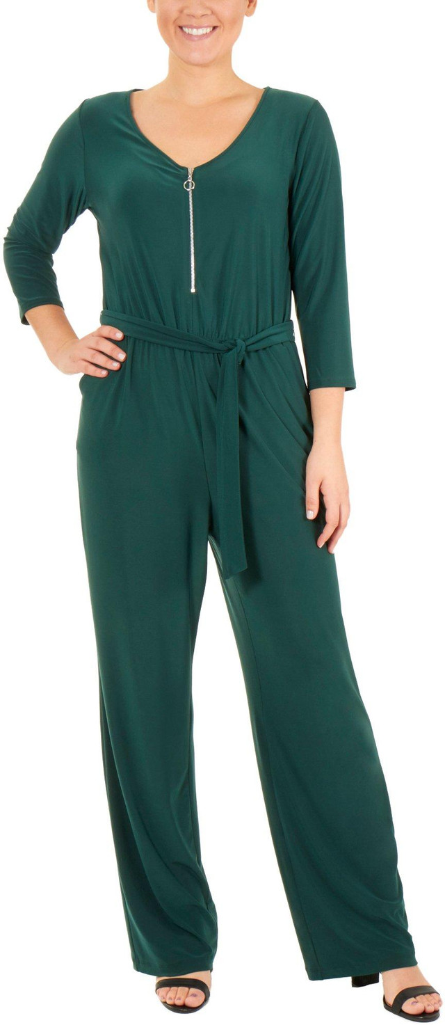 From office to evening, this zipper front, flared leg jumpsuit with tie belt from NY Collection will be a comfortable yet stylish statement piece. Inseam is approximately 31 inches.