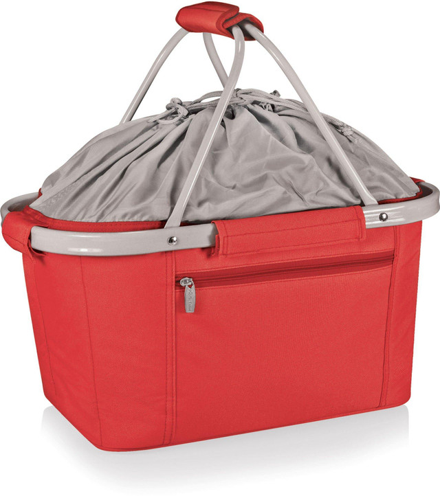 The Metro Basket is a lightweight fully-collapsible, insulated basket. It's made of 600D polyester canvas and features a water-resistant interior and expandable drawstring top and sturdy aluminum frame from which the canvas detaches. Measures: 19'' x 12'' x 9''.
