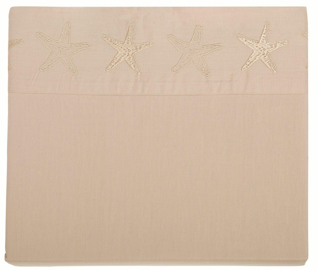 Pick up a piece of the Panama Jack lifestyle and relax into your favorite time and place. This 100% cotton percale sheet set features a starfish embroidery and 200 thread count. Set includes one embroidered flat sheet, one fitted sheet, and two embroidered pillow cases (one for twin size).