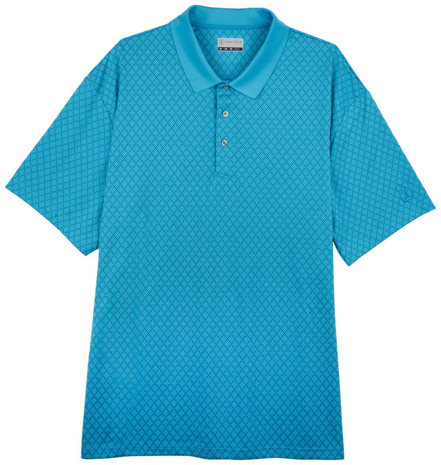 Gear up for the golf course in this polo shirt by PGA TOUR. This polo top features a textured geo lightweight jacquard stretch fabric, handsome three-button placket, Moisture-wicking technology keeps you feeling dry, UPF 50 sun protection to keep you protected all day, and a classic fit. Top measures approximately 34 inches from shoulder to hemline. Fabrication 100% polyester.