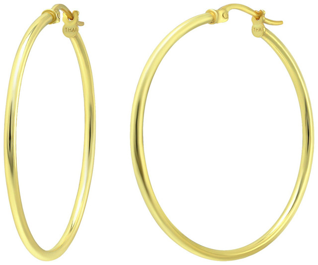 Complement your outfit with these earrings from Piper & Taylor. These earrings feature a hoop shape, smooth feel, leverback closure, and gold/silver tone finish. 30 mm.