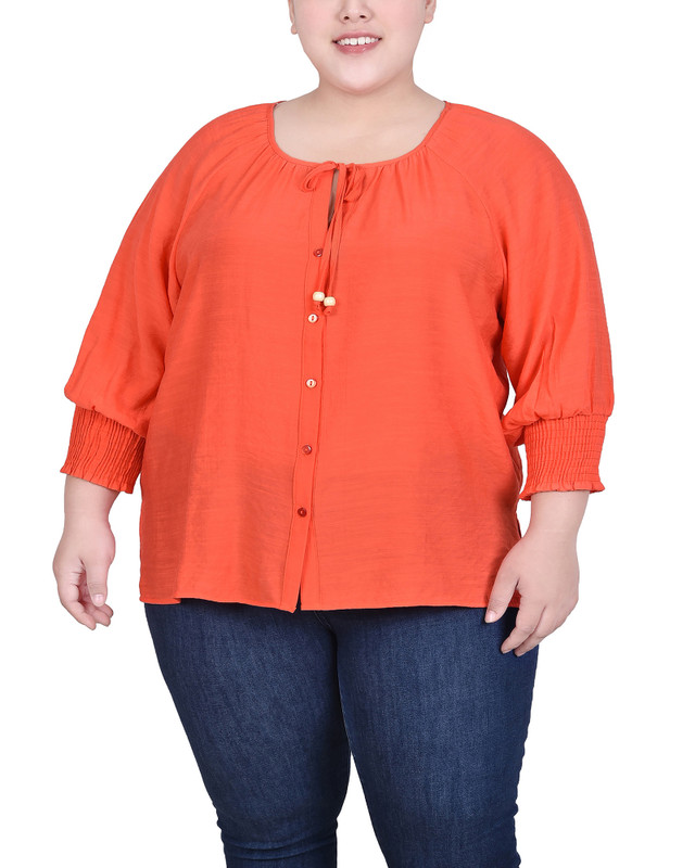 NY Collection Plus 3/4 Sleeve Button Front Blouse Bealls Florida