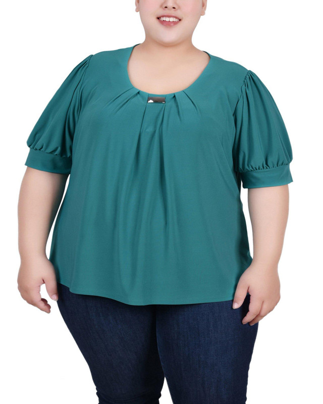 Plus Short Sleeve Balloon Sleeve Top With Hardware