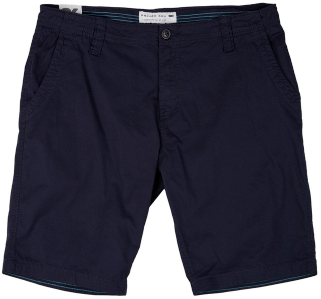 Projek Raw shorts feature a classic solid color design, two front and back pockets, and comfortable twill fabrication. Fabrication is 97% cotton, 3% spandex. Inseam measures approximately 9 inches. Outseam measures approximately 18 inches.