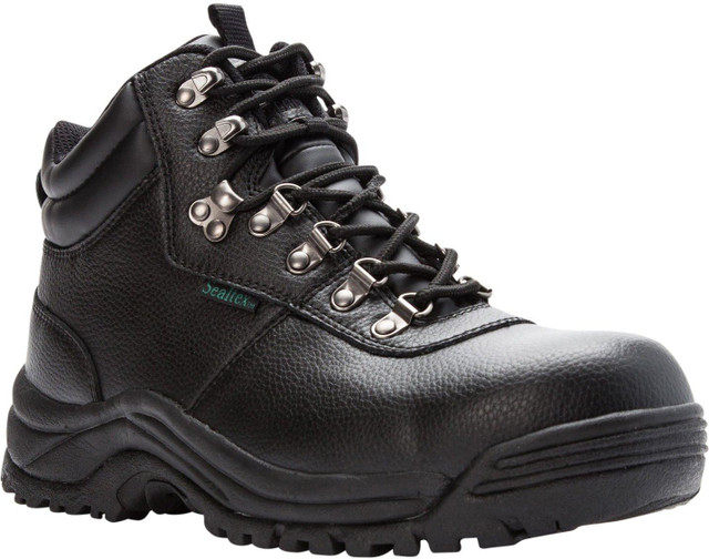 Introducing the Shield Walker Boots, designed for tough work environments. These toe work boots feature a weather-resistant, full-grain leather upper and Sealtex waterproof construction to keep out moisture. The lightweight cushioned midsole ensures all-day comfort, while the high-traction rubber outsole provides slip resistance and durability. Perfect for any job site, Shield Walker Boots offer the protection and support you need to stay safe and comfortable.