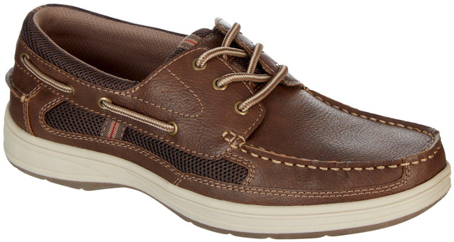 These Reel Legends Mens Outrigger Casual Boat Shoes feature a lace up front, mesh insert side panel, and classic lace and contrast stitching details. Ribbing on the sole gives traction in wet or dry conditions.