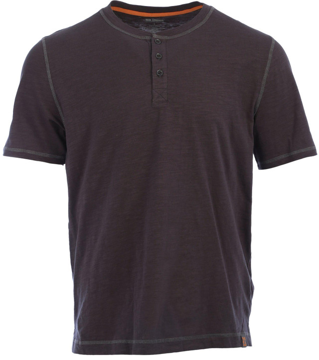 Introducing the Mens Short Sleeve Pineland Henley Tee by Reel Legends! Crafted from lightweight knit fabric, this tee features a solid color design and a classic three-button henley placket. The subtle brand logo tag adds authenticity. Perfect for casual outings and warm days in the sun! Measures approximately 30 inches in length. Fabrication 100% cotton.