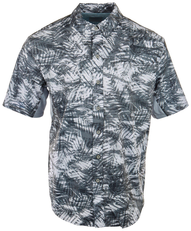 Show off your love for fishing on and off the boat in this stylish Mariner short-sleeve shirt from Reel Legends! This shirt features a palm-frond print pattern on lightweight woven fabric, a point collar, full button closure, a fully vented back and underarm panel to keep you cool, two front utility chest pockets, a rod holder, UPF 50 sun protection, and moisture-wicking and quick-dry technology. Fabrication 100% polyester.