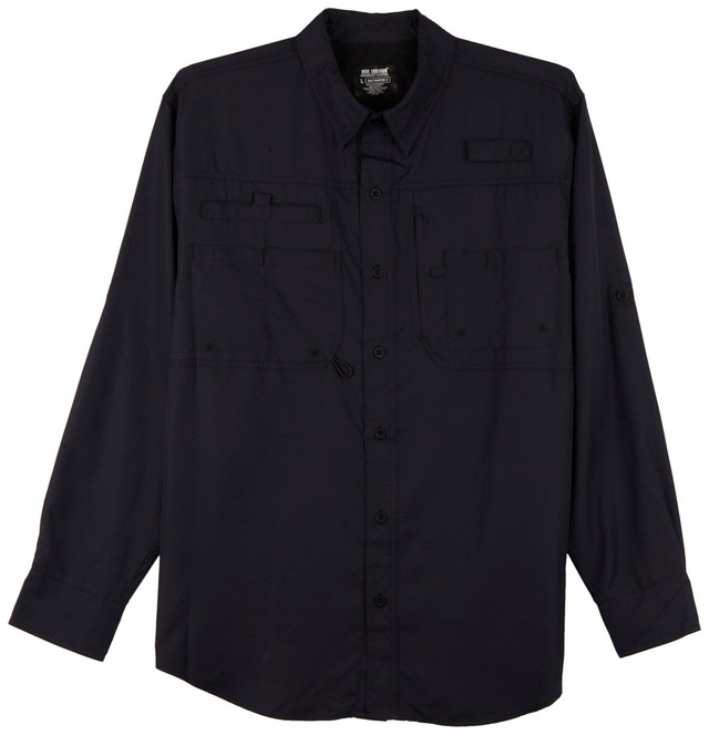 This Salt Water II long-sleeve shirt from Reel Legends features a solid color design on lightweight woven fabric, a point collar, button front closure, a fully vented back and underarm panel to keep you cool, two front utility chest pockets, a rod holder, UPF 50 sun protection, and moisture-wicking and quick-dry technology. Fabrication 100% polyester.