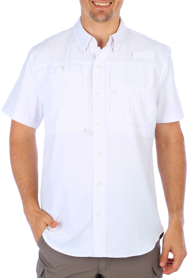 Introducing the Saltwater II Shirt by Reel Legends, the perfect blend of functionality and style for your outdoor escapades! This solid color shirt features a classic button-down front and a point collar for a timeless look. The fully vented back panel ensures maximum breathability, keeping you cool in any condition. With six individual front chest pockets, including a zipped pocket and a convenient rod-holder, you will have all the storage you need for your fishing adventures.