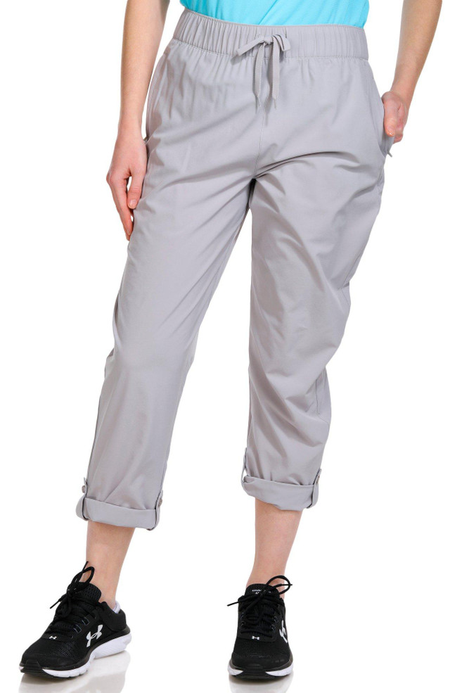 The Aquaphile Pants are designed for both comfort and functionality. Featuring an elastic waistband, they provide a secure and adjustable fit. With two front and back pockets, these pants offer ample storage for your essentials. The roll tab ankles add versatility, while the moisture-wicking fabric and sun protection ensure you stay cool and protected during outdoor activities. Inseam measures approximately 27 in. Fabrication 86% polyester, 14% spandex.
