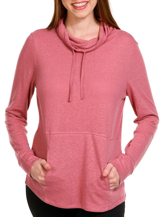 Stay cozy and stylish with our Womens Long Sleeve Solid Cowl Neck Top. This elegant top features a chic cowl neck with a drawstring detail, adding a touch of sophistication to your look. Crafted from a blend of 55% linen and 45% polyester, it offers a soft, breathable fit perfect for any season. The solid color design makes it versatile for both casual and dressier occasions.