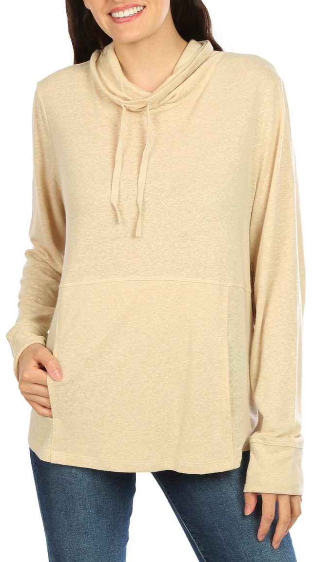Stay cozy and stylish with our Womens Long Sleeve Solid Cowl Neck Top. This elegant top features a chic cowl neck with a drawstring detail, adding a touch of sophistication to your look. Crafted from a blend of 55% linen and 45% polyester, it offers a soft, breathable fit perfect for any season. The solid color design makes it versatile for both casual and dressier occasions.