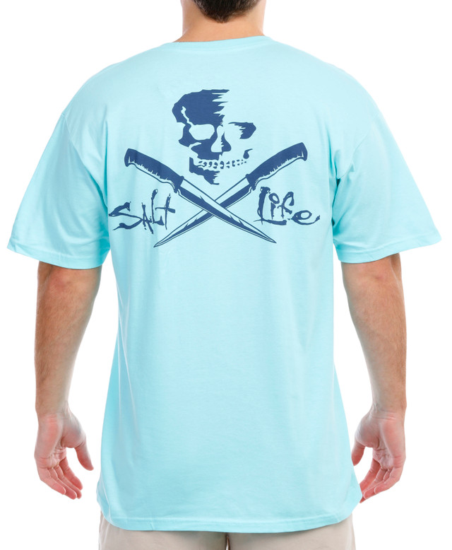 This short sleeve tee features a solid color design on lightweight breathable 100% cotton jersey fabric, screen printed graphic on the back, screen print logo on the chest, one chest pocket, a crew neckline, and a classic fit. Top length measures approximately 32 in. Fabrication 100% cotton.