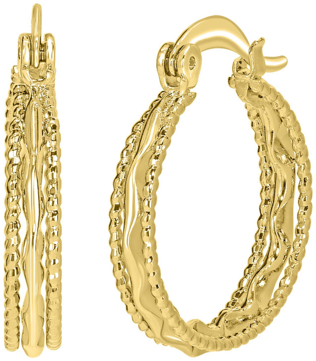 Make a bold statement with our Signature 22 mm Three Ring Twisted Hoop Earrings. These eye-catching hoops feature a unique three-ring design that adds depth and movement, beautifully enhancing any outfit. Crafted with a twisted texture, these earrings catch the light from every angle, creating a stunning sparkle that draws attention.