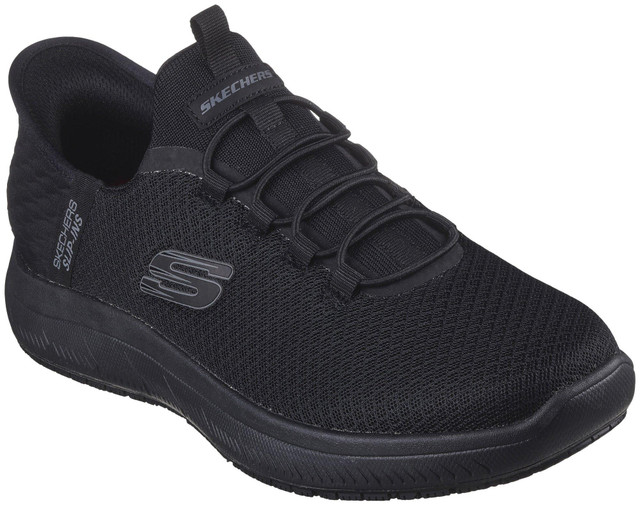 Stay active and comfortable while on the clock with the Skechers Work: Slip-ins - Colsin SR. This lightweight slip-on is engineered with a breathable mesh upper and features Skechers' Hands Free Slip-ins molded heel design for an easy on and off. These sneakers are perfect for long shifts with a Stretch Fit slip-on design for sock-like comfort and a Unique Comfort Pillow heel for added support. Air-Cooled Memory Foam insole that ensures all-day comfort.