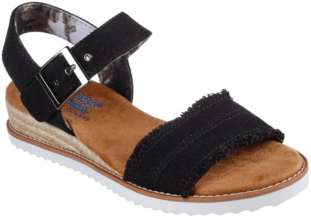 Get styled for fun under the sun with the BOBS from Skechers Desert Kiss - Adobe Princess sandal. This strappy comfort sandal features a canvas upper with frayed details, hook and loop strap closure, plus a cushioned Memory Foam footbed.