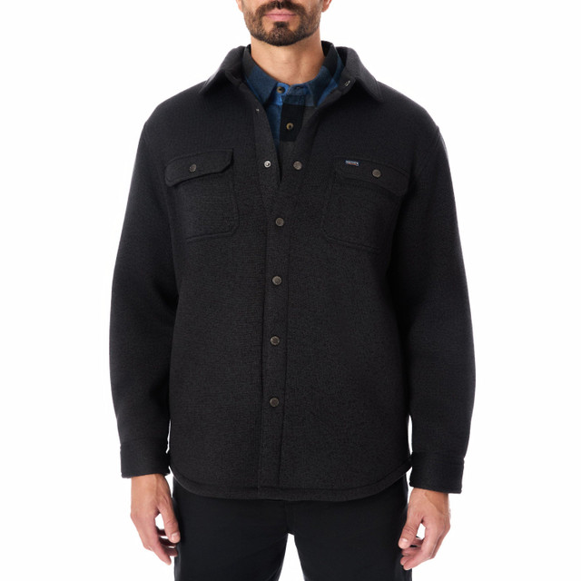 New for this fall is our sherpa-lined bonded sweater-fleece snap closure shirt-jacket. This cozy super comfortable shirt-jacket features 2 snap chest pockets, side seam pockets and adjustable cuffs. A great companion in the fall when the air gets crisp.