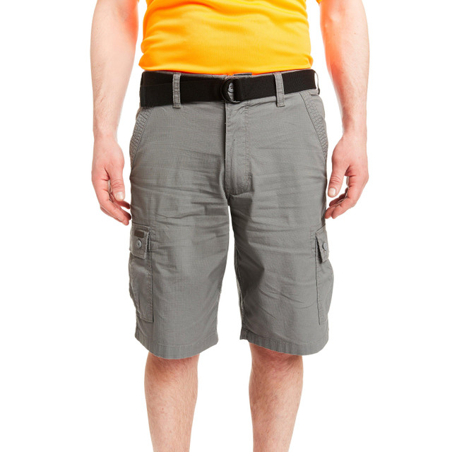 Made of cotton spandex Smith's-Stretch technology ripstop fabric, this cargo short is a durable classic. Button closure pleated cargo pockets for extra storage and security; button closure back pockets for security; mesh-lined front and back cooling pockets for extra comfort; Smith's elastic comfort-waistband provides a touch of extra comfort during your active days; reinforced stitching for strength; High-Viz orange accented inside gives a sporty look. Includes a removable belt.