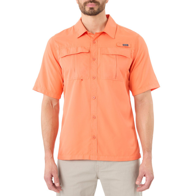 This fishing shirt is not only excellent for fishing but drinks at the harbor too. Made of a lightweight quick dye performance mini-ripstop, this fabric is breezy yet strong. With all of the essentials such as large velcro closure pockets, velcro reel tab and rod loop and a large vented mesh back panel to keep you comfortable as well.