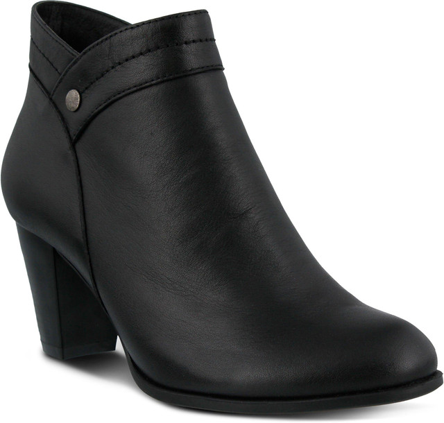 The Spring Step Itilia is a leather pull-on bootie with feminine topline and heavy stitch detail. An inside zipper closure provides a secure fit. Shaft Height (approximately): 4 Circumference (approximately): 11