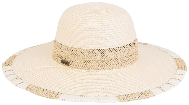 This Baia Sun Hat features a solid color design on a paper braid fabrication, a round crown, a cord hatband with side tie, UPF 50+ sun protection where skin is covered, an interior size adjuster, and a wide brim. Brim measures approximately 4.25 in.