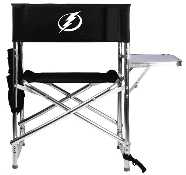 The Sports Chair by Picnic Time is lightweight & foldable with a sturdy aluminum frame and adjustable shoulder strap. Chair features extra-wide seat (19.5'') and is made of durable 600D polyester. Side table folds out and holds up to 10 lbs. Maximum weight capacity: 300 lbs.