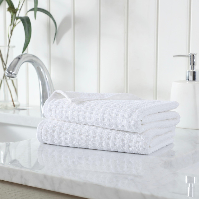 Wrap yourself in tropical comfort with the Tommy Bahama 2 piece hand towel set. Available in a vibrant color palette, this towel set will coordinate with any bathroom décor. Constructed in high quality cotton, this perfect towel set will seamlessly bring a pop of color and style to your home. These towels have a substantial 465 gsm, durable and quick drying zero twist construction. Machine washable for easy care. 2 Piece Set includes 2 Hand Towels: 28L x 16W each.