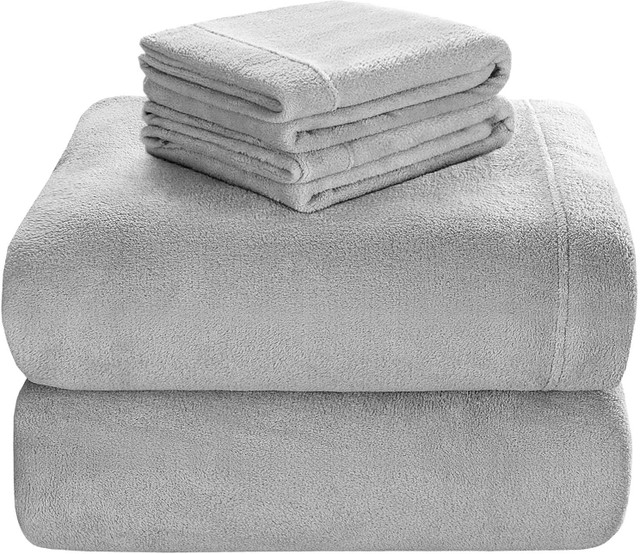 Micro plush fabric offers the ultimate in sleeping comfort with a velvety soft finish to warm you up. The light weight fleece is a soft and fluffy way to add warmth, and is machine washable. Set includes 1 flat sheet, 1 fitted sheet and 2 pillowcases (1 pillowcase in twin set).