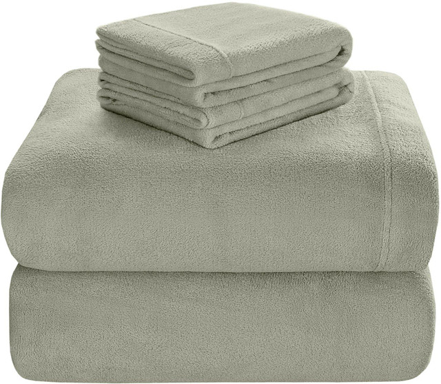 Micro plush fabric offers the ultimate in sleeping comfort with a velvety soft finish to warm you up. The light weight fleece is a soft and fluffy way to add warmth, and is machine washable. Set includes 1 flat sheet, 1 fitted sheet and 2 pillowcases (1 pillowcase in twin set).